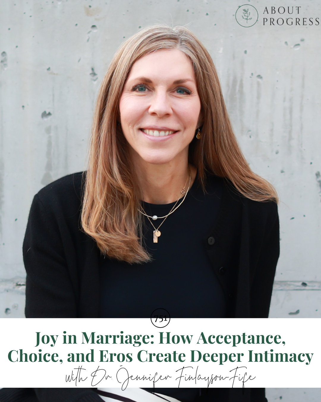 In today's conversation, I am joined with Dr. Jennifer Finlayson Fife, one of our most loved guests here on about progress, and we are talking about joy, what it really is. Why it often feels so far away and how marriage can actually be one of the most powerful places to develop joy. We explore the idea of creating an eros kind of love through intimacy and marriage.
